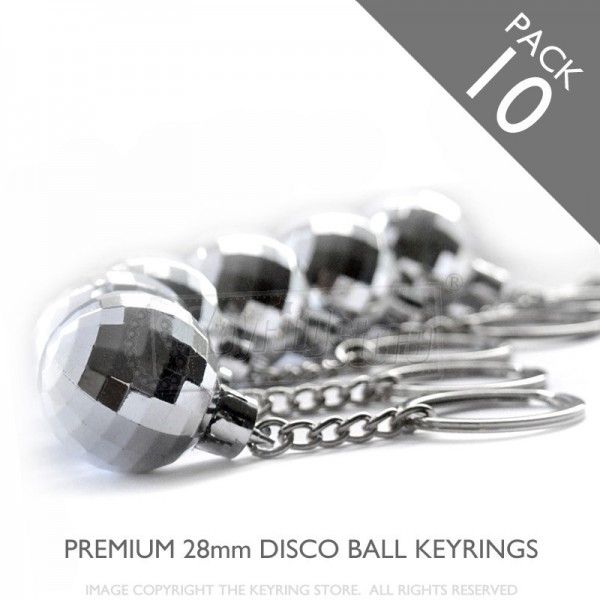 28mm Premium Silver Disco Ball Keyring -with high quality chain Premium quality key ring with chromed mirror finish. Ideal for a party or wedding! Also ideal as a promotional keyring. Approximate size: 28mm. New updated design. Lightweight yet high quality finish with flat split ring. QUANTITY DISCOUNTS Multipacks