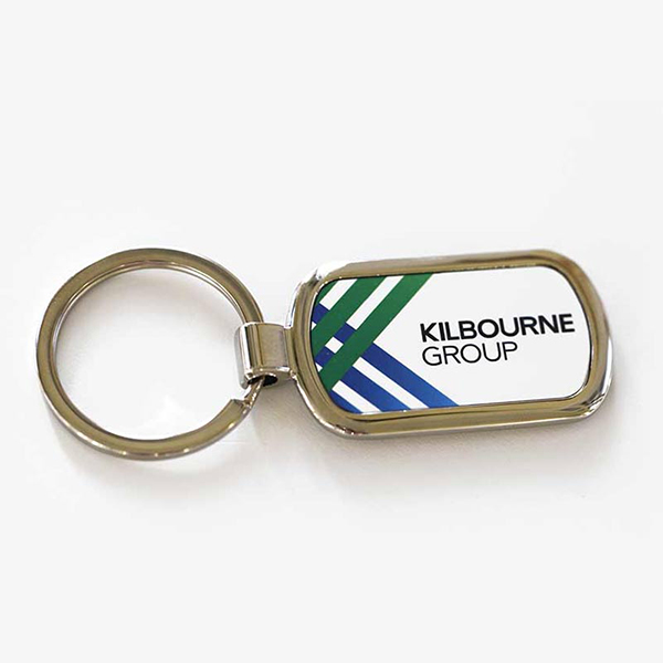 Square contoured metal alloy personalised photo or logo keyring.